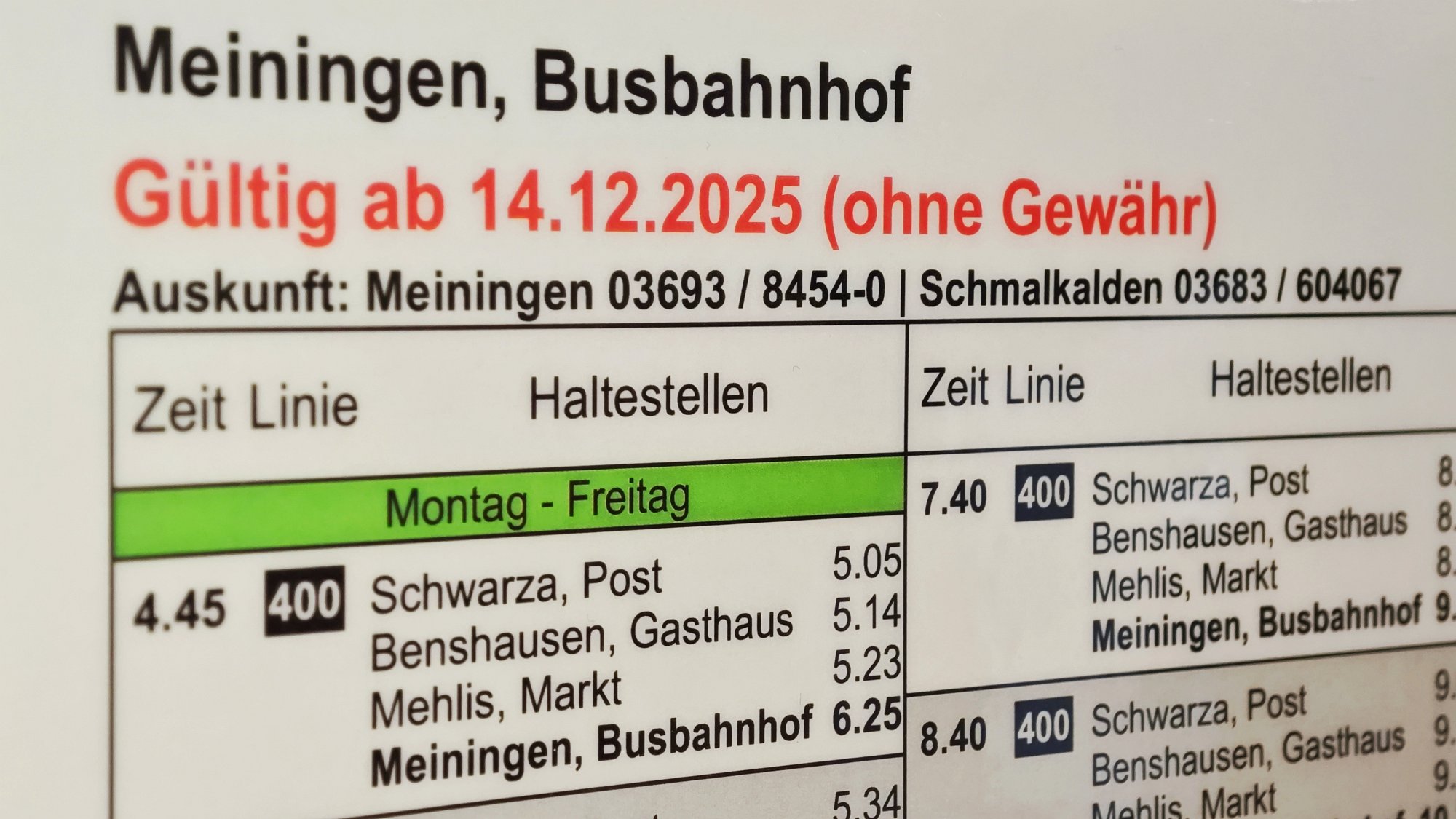 Ab Sonntag, den 14. Dezember 2025 treten geringfügige Anpassungen der Fahrpläne der MBB Meininger Busbetriebs GmbH in Kraft. Ziel dieser Maßnahmen ist es, Parallelverkehre zu reduzieren und die Anschlussqualität für Fahrgäste zu verbessern. Wichtige Neuerungen und Streckenanpassungen: Ende des Baufahrplans Helmers: Mit dem Fahrplanwechsel wird die Baumaßnahme in Helmers abgeschlossen.